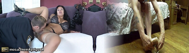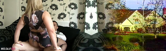 The Blonde Older Mummy Takes The Jiggly Cock Out Of Her Pants And Begins Sucking It. She Enjoys The Cock And Plays With Her