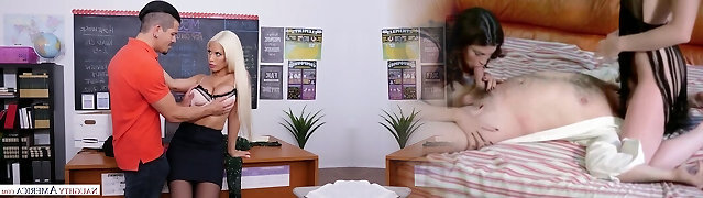 TUTOR4K. Towheaded teacher got a lesson from angry student at his home