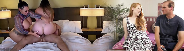 Big-titted Redhead Milf sucks dicks, and fucks with stepsons