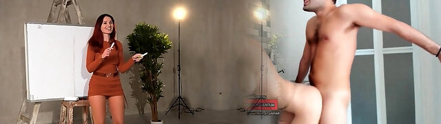 Sex-crazy professor Olga takes off panties and displays her cunt to horny students