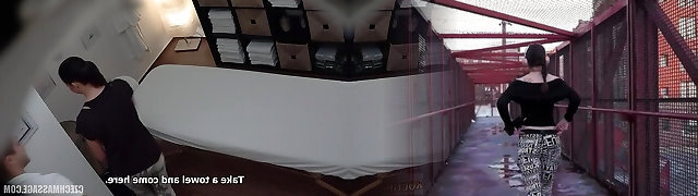 Gang sexy matures spied on in shower room