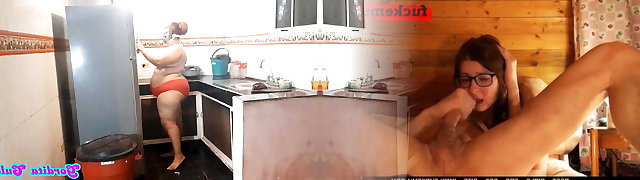spying on my chubby neighbor in the kitchen.