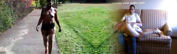 Bootylicious ebony girlfriend walking in the park topless