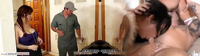 Lucky worker is seduced by huge-titted housewife and treated with nice head