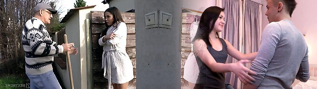 Sex-attraction brunette Anastasia Brokelyn gets intimate with old man