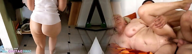 Spoiled old housewife goes scrotum and gives both blowjob & rimjob to horny stud