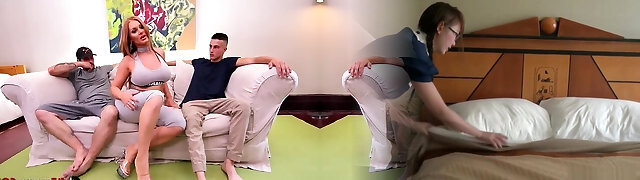Very Busty Blond Hair Babe Shagged By Two Hotness Guys