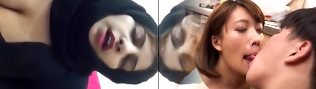 Cute Asian babe in hijab bangs in missionary style