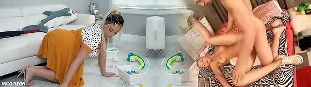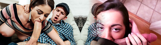 Petite Light-haired Braylin Bailey seduced her step-brother to fuck her jaws but got caught when he cum