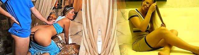 The penis stepson hard enters the narrow rump and pussy of a mature step mom