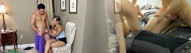Petite babysitter gets rough fucked by the kinky dad