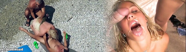 Slim ash-blonde rocks 2 cock on the public beach - Amateur Porn