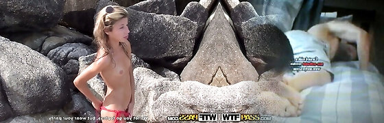 Hot Teenies With Thin Body Likes To Ride On Huge Dick Along The Beach