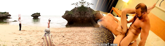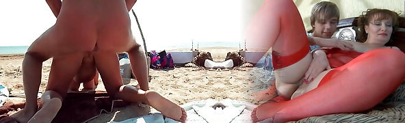 STEP MOM Boning ON A NUDUISTIC BEACH WITH STEPSON WHILE Husbands SWIM.