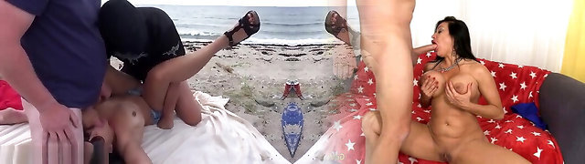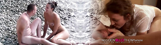 Horny and curvy mommy gets fucked by her husband on bare beach