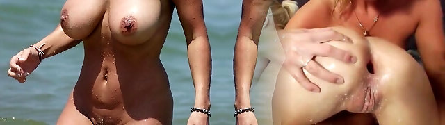Luxurious Lindsey plays with her fun bags and wet pussy on the beach