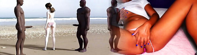 White Girl Gets Blacked On The Beach By Two Bbcs