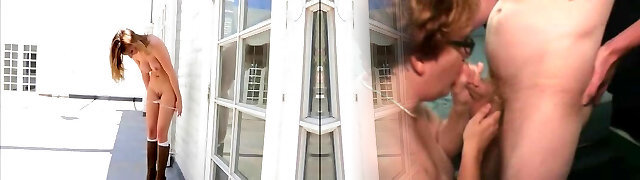 Pale redhead female Annabel Redd drops her bikini to be fucked