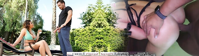 Lubed bodacious MILFie nympho Jazmyn gets nailed doggy on the deck tabouret