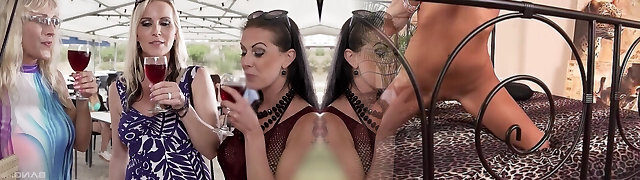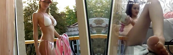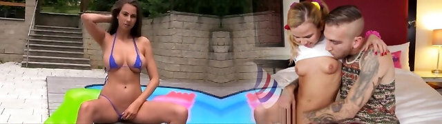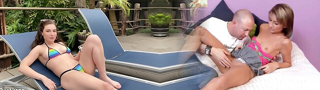 Two slutty MILFs have fun with the Bbc while their bikinis barely coat their nipples