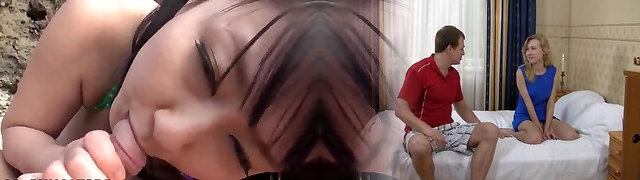 Boobylicious brunette ultra-cutie gives breath taking blowjob