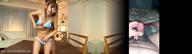 Her tiny shiny bikini comes off so the Asian girl can masturbate