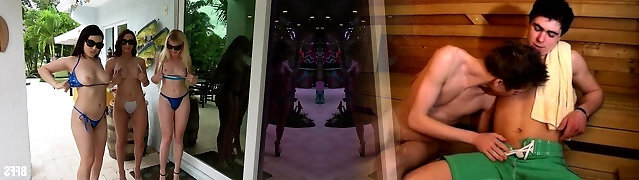 Big-boobed dolls Tiffany Kingston and Ava Koxxx have sex in the sauna