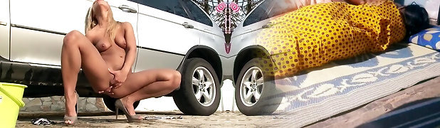 Insolent young slut with natural boobs romps car driver's hefty dong
