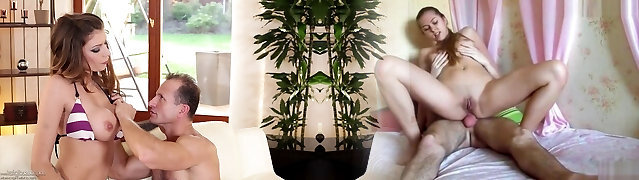 Luna Star and Rose enjoy amazing four-way fuck-fest in the living room