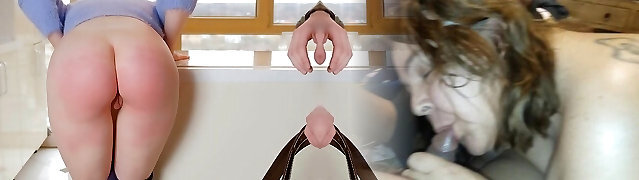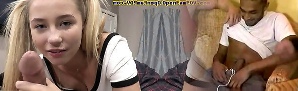 Pigtailed stepdaughter giving bj while railing taboo dick