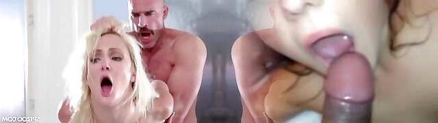 Fake tittied blonde and giant bottomed Blair Williams enjoy cum swapping