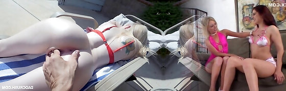 Sunbathing daughter-in-law Lexi Lore gives a suck blowjob by the poolside