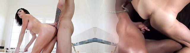 Super juggy acquaintance Gabbie Carter gives a oral pleasure and gets her slit rammed