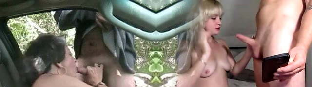 Cute blonde fucks with a stranger and makes him fellatio in the van