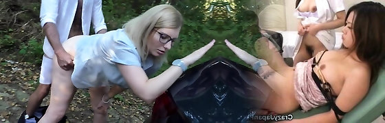 Crazy Orgy in a Moving Bus with Cock Blowing and Railing Japanese Sluts