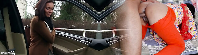 Whore with big funbags has sex in car