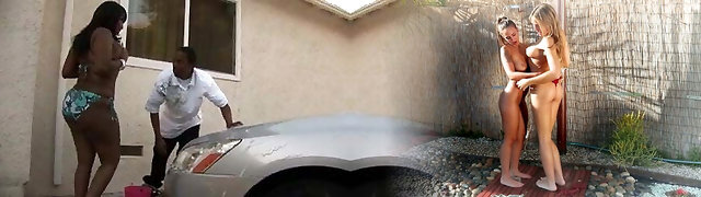 step mom deepthroats and Jerking OFF at the car wash in public. Cumshot