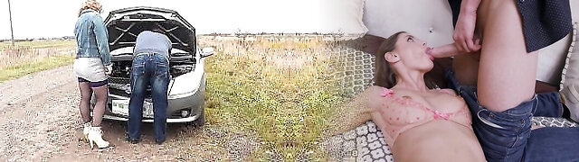 Public fuckfest. Random passerby helped to repair truck Frina and fucked her doggy fashion on auto hood. Whore. Slut. Outdoor. Outside. In public. Casual orgy sexy Milf
