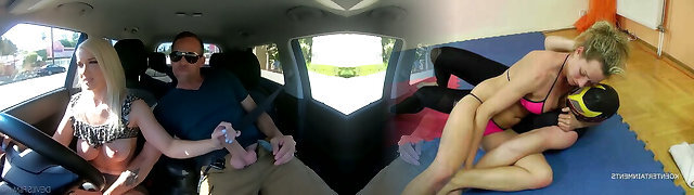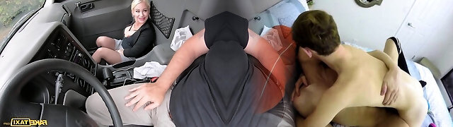 Shy passenger cheats on his Girlfriend with insatiable blonde taxi driver