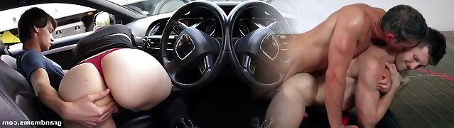 Time worn grandmother giving gumjob in a front seat in my camper