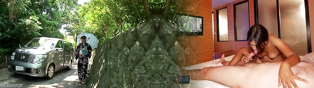 Kimono dame in a van fellates dick and gets toy fucked