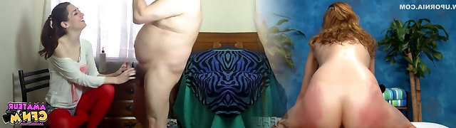Plump CFNM amateur and dark-hued in 3way