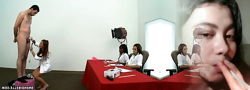 Asian coeds sharing fat dick at the classroom