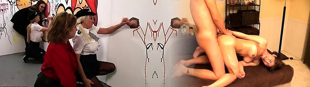 CFNM babes cockuskcing in glory hole