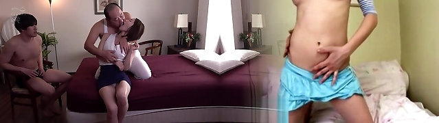 Japanese teen tears up her cuckold bf stepfather while he watches