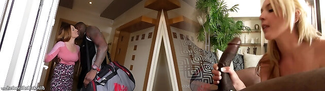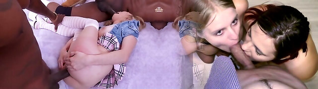 Redheaded girl and 2 black dicks fucking lustily