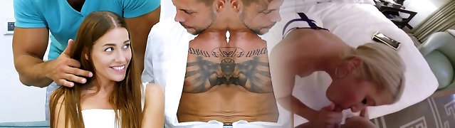 Several clients fuck trampy masseur Billie Star and jizz on her face