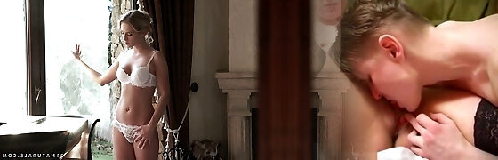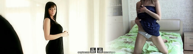 Aroused brunette in erotic lingerie, Mylena Johnson could not hold back from cheating on her partner