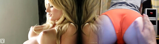 Blonde hottie touching big full tits in erotic sequence