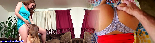 Lezzie Domination strapon action with two glam redheads